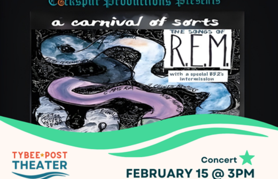 Local favorite Eric Britt and an ensemble of some of Savannah's most talented musicians are bringing the music of R.E.M. to the Tybee Post Theater. You will be treated to live performances of your favorite tunes from the band that emerged from the Athens music scene in the 80s to become a huge national and worldwide success. Eric will be joined onstage by Kevin Rose, Stan Ray, Brett Bigelow, Ty Thompson, Susanna Kennedy, Markus Kuhlman, Brandon Walker, Dray Harris and others. In addition, you will be treated to a special intermission performance featuring the music of the B52s by Phillip Price, Craig Johansen, Amy Ochoa and Kellie Parr. This amazing show will make you feel like you're in Athens during its musical heyday, so get your tickets before it sells out.