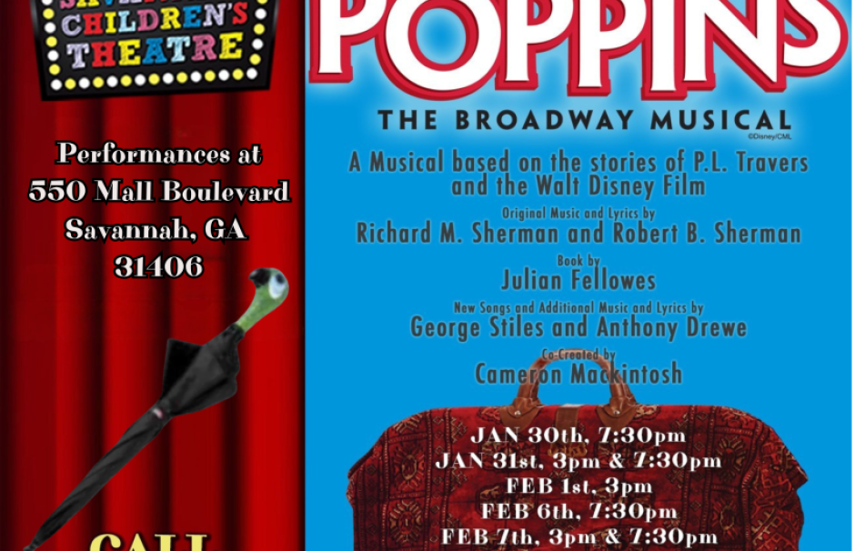 Let's go fly a kite! Savannah Children's Theatre presents Disney's Mary Poppins at the new castle theatre on Mall Boulevard. Filled with unforgettable music, high-energy dances & heartwarming laughter, this is sure to be a jolly holiday for the whole family! Best enjoyed by ages 7+