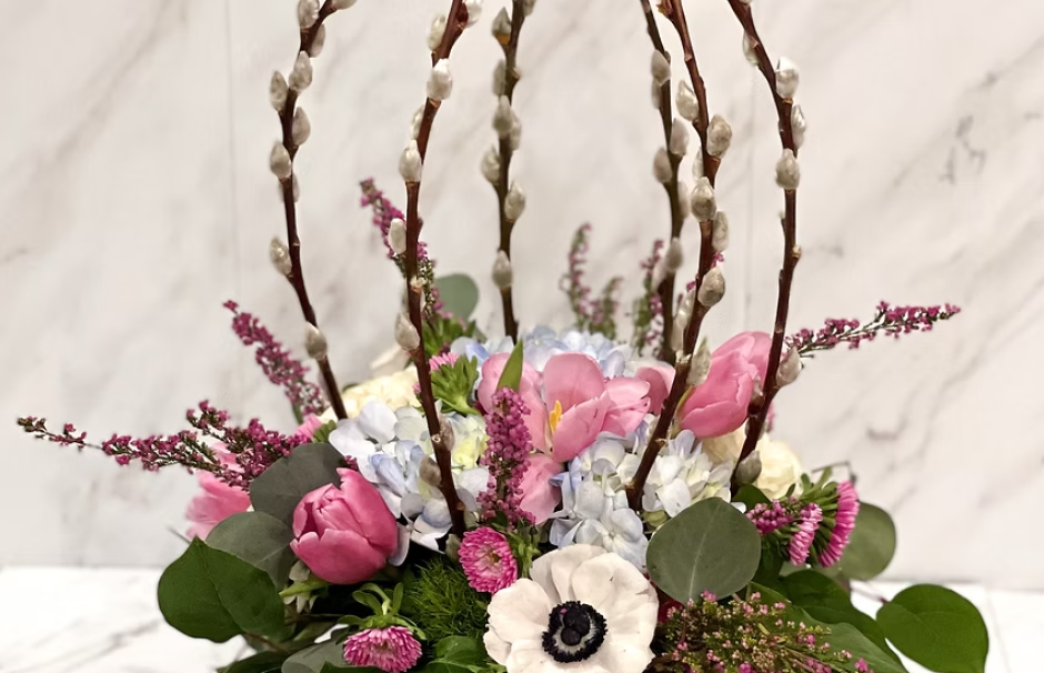 Celebrate the arrival of spring at our Easter Fresh Flower Workshop! Make a stunning arrangement featuring a pussy willow egg topiary!