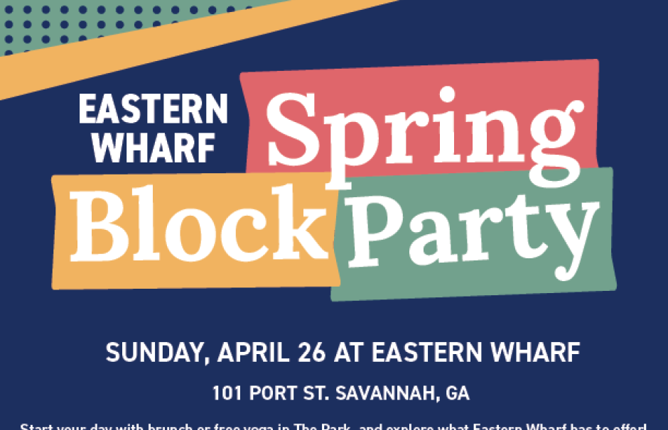 The Eastern Wharf Spring Block Party will feature free yoga, on-site tours, premium raffle prizes, and more! Plus, enjoy local food trucks and live music on-site from 1 to 3 p.m.