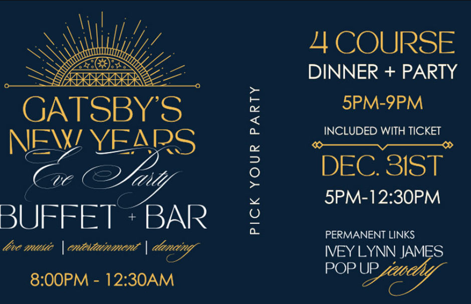 It's a Great Gatsby New Year with Pacci! One bottle of House Champagne + 4 course meal that includes tickets to the NYE Party. Reservations start at 5PM