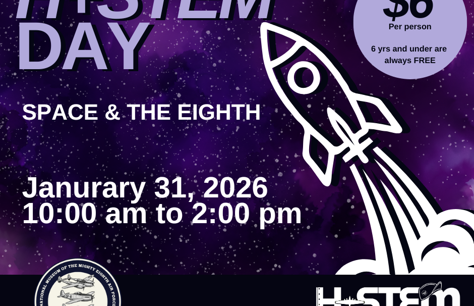 Designed for curious minds of all ages, H+STEM Day features engaging, hands-on activities and interactive exhibits that explore space science, aviation history, and the legacy of the Mighty Eighth Air Force. From problem-solving challenges to immersive learning stations, visitors will discover how history, science, technology, engineering, and math intersect in exciting and unexpected ways.
