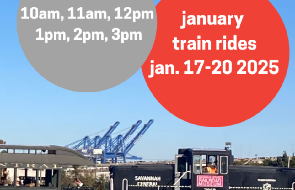 Take a train ride. Georgia State Railroad Museum in Savannah will offer short train rides during the Martin Luther King Jr. holiday weekend, Jan. 17-20, 2025. Train rides are at 10 am, 11 am, 12 pm, 1 pm, 2 pm, & 3 pm. The schedule is subject to change. Please check Coastal Heritage Society's social media or call ahead at 912.651.6823.
