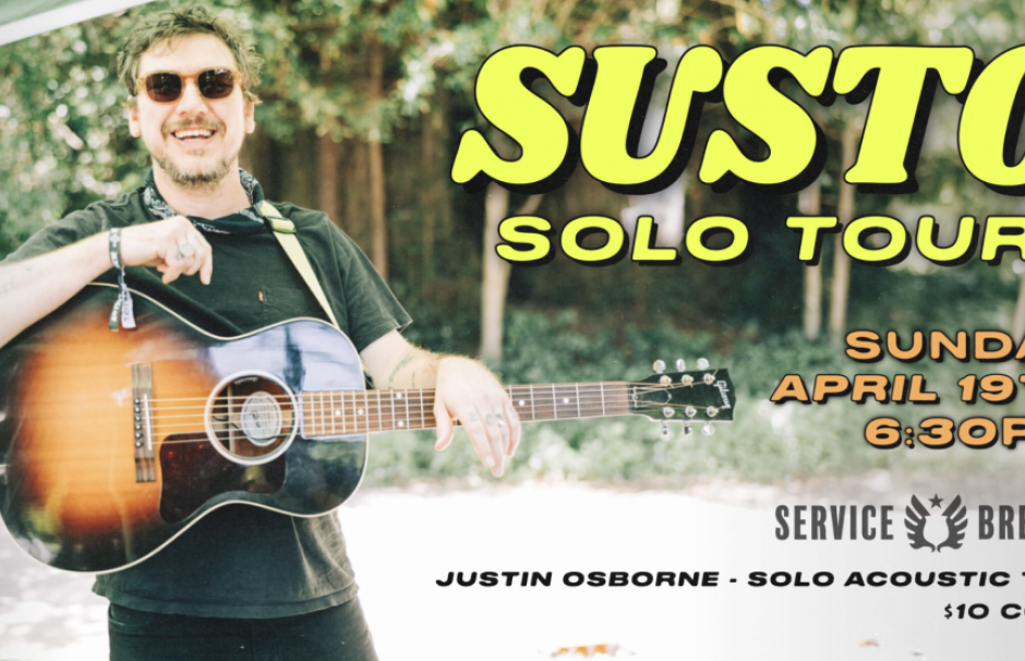 Join us at Service Brewing on April 19th at 6:30pm for an intimate evening with Justin Osborne, frontman of the American-indie rock band, Susto.