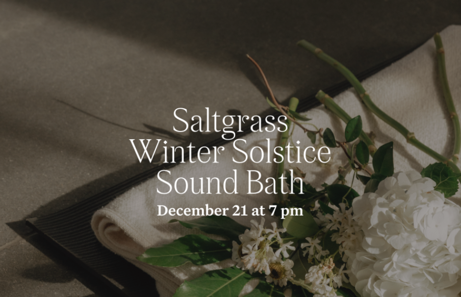On the evening of December 21, Saltgrass Spa invites you to mark the Winter Solstice, the longest night of the year, with an immersive candlelit sound bath. In this rare moment of pause during the holiday season, you'll be guided into deep rest as resonant tones reverberate through the space, balancing mind and body in stillness.