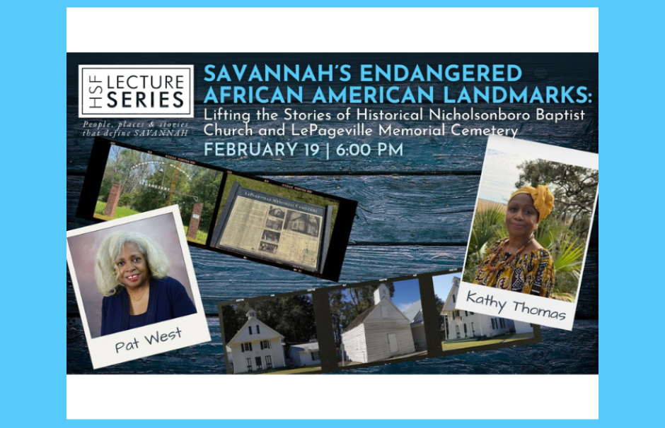 Historic Savannah Foundation (HSF) — the leading nonprofit cultural institution dedicated to saving the buildings, places and stories that define Savannah's past, present and future — will host an informative, engaging lecture titled "Savannah's Endangered African American Landmarks: Lifting the Stories of Historical Nicholsonboro Baptist Church and LePageville Memorial Cemetery" as part of the Historic Savannah Foundation Lecture Series, "The People, Places and Stories that Define Savannah."