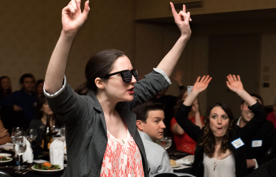 Join us for an event that is very different from a traditional mystery dinner show. Our actors are not dressed in costume and are hidden in the audience! This results in a fun, social, and interactive evening suitable for all adults.