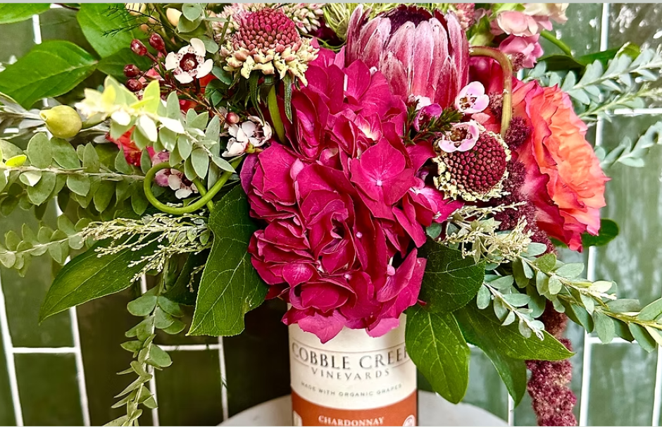 Uncork your creativity with Syd Nichole's Wine-Inspired Flower Workshop! In this unique hands-on class, we use recycled wine bottles as chic vases and guide you through designing your own lush floral arrangement inside them.