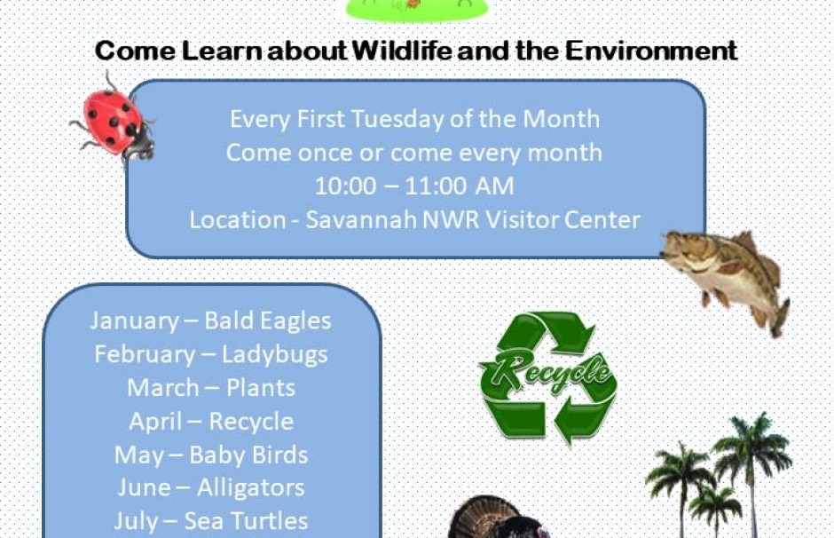 Bring your preschoolers and join us for an hour of educational fun! The Young Explorers Club programs are developed specifically for 3 & 4 year old children with each month focusing on a different nature-based topic. Each program includes a book reading, craft, and snack related to the monthly topic, and are offered the first Tuesday of every month. All programs are free and open to the public, and will be held at the Savannah NWR Visitor Center.
