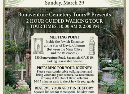 If Savannah is your destination, Bonaventure Cemetery should be on your bucket list of must-see sites. Bonaventure Cemetery is located at 330 Bonaventure Road, Thunderbolt, Ga, 31404. It is open from 8 am to 5 pm every day of the year.