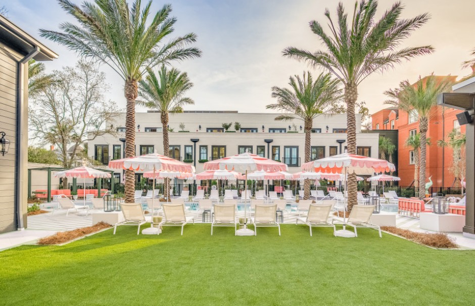 Hotel Bardo Savannah is a new urban resort at the heart of Savannah’s Forsyth Park. Inspired by the leisurely luxury of the Mediterranean coast and the 1960s retro primetime of glamorous travel, Hotel Bardo will be a beacon for the adventurous–a place to disconnect from the everyday, where rare experiences rule. The urban resort’s marquee restaurant and cooking school, Saint Bibiana led by Executive Chef Derek Simcik. Property highlights include 149 luxury guest rooms, with 20 being suites; the pool and Bar Bibi the pool bar which plays the cheeky younger sister role to restaurant Saint Bibiana; Saltgrass; a holistic gym and wellness spa; Club Bardo membership and social club; additional standout food and beverage locales including The Courtyard and The Green Room lobby bar; Shop Bardo; curated retail; and event spaces like the elegant and modern Carriage House and the 3,500-square-foot Ballroom.