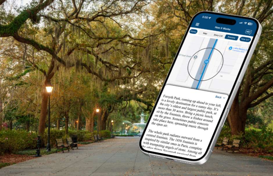 Along the way, you’ll hit favorites like River Street, Factor’s Walk, City Market, Chippewa Square, and Forsyth Park, plus beautiful landmarks and homes that shaped Savannah’s character. The tour plays 50 location-based audio stories across about 5 miles, and most people finish in 1 to 2 hours, depending on how often you stop. Download ahead of time, then tour with an offline map. No one meets you at the start, so you can begin whenever you like.