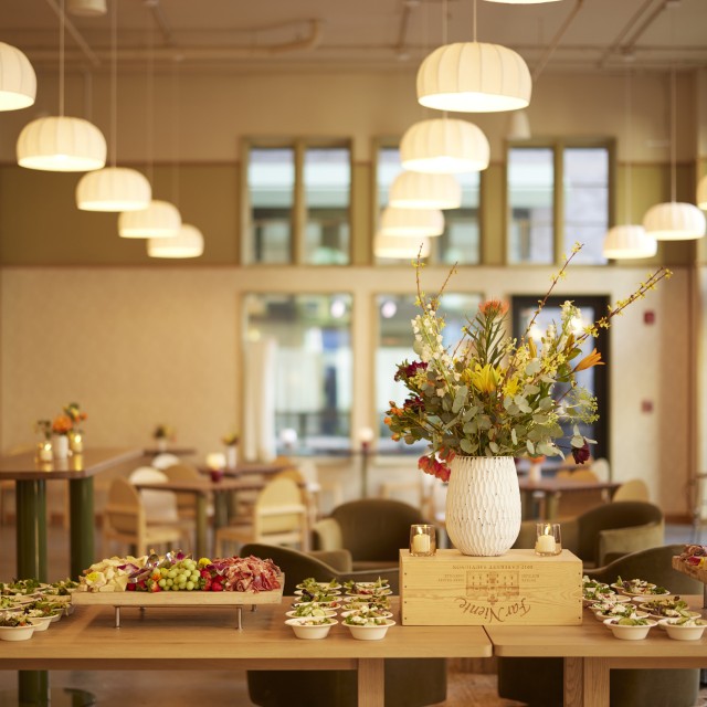 With studios, 1–4 bedroom suites, and even lofts with private entrances, the Ann has the perfect space for any number of guests. Modern and warm interior designs. Full kitchens and an expansive sunlit gym. Exposed hardwood beams, columns, and ceilings.