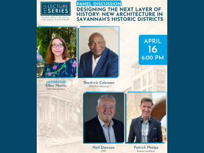 Historic Savannah Foundation will host a special panel discussion titled "Designing the Next Layer of History: New…