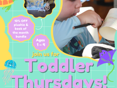Toddlers and their grown-ups are introduced to a marine animal or subject through different activities, like a book…