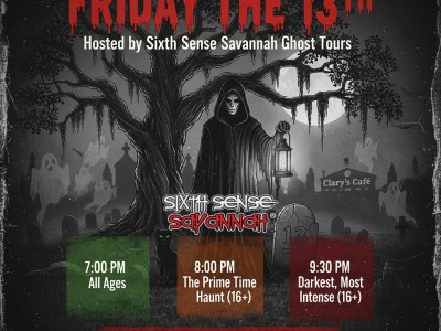Friday the 13th Hosted by Sixth Sense Savannah Ghost Tours© Join Sixth Sense Savannah, the city's leaders in paranormal…