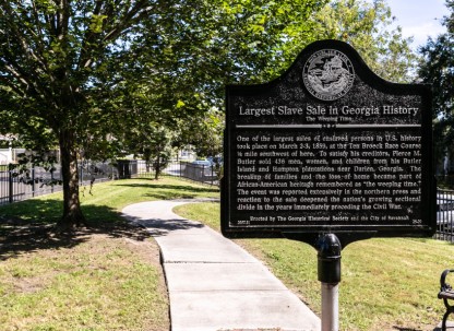 The slave trade auction deemed "The Weeping Time," was responsible for enslaving 436 men, women and children. It stripped away freedom and separated families during two horrendous days of constant heavy rainfall. Now a park landmark, this historical event called attention to the northern media and exposed the cracks between the North and South before the start of the Civil War.